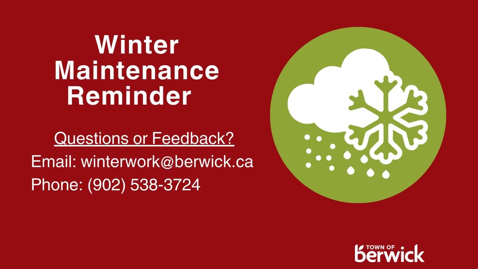 The Town of Berwick would like to thank our residents for their patience and feedback regarding the first snowfall of the season on December 2 and 3. This year, the Town contracted external providers for winter street and sidewalk maintenance, and we know there were challenges for the first snowfall. In order to make improvements for the future we want to hear from you.